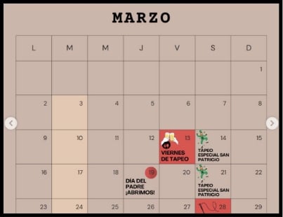 Calendario de eventos Marzo 2026